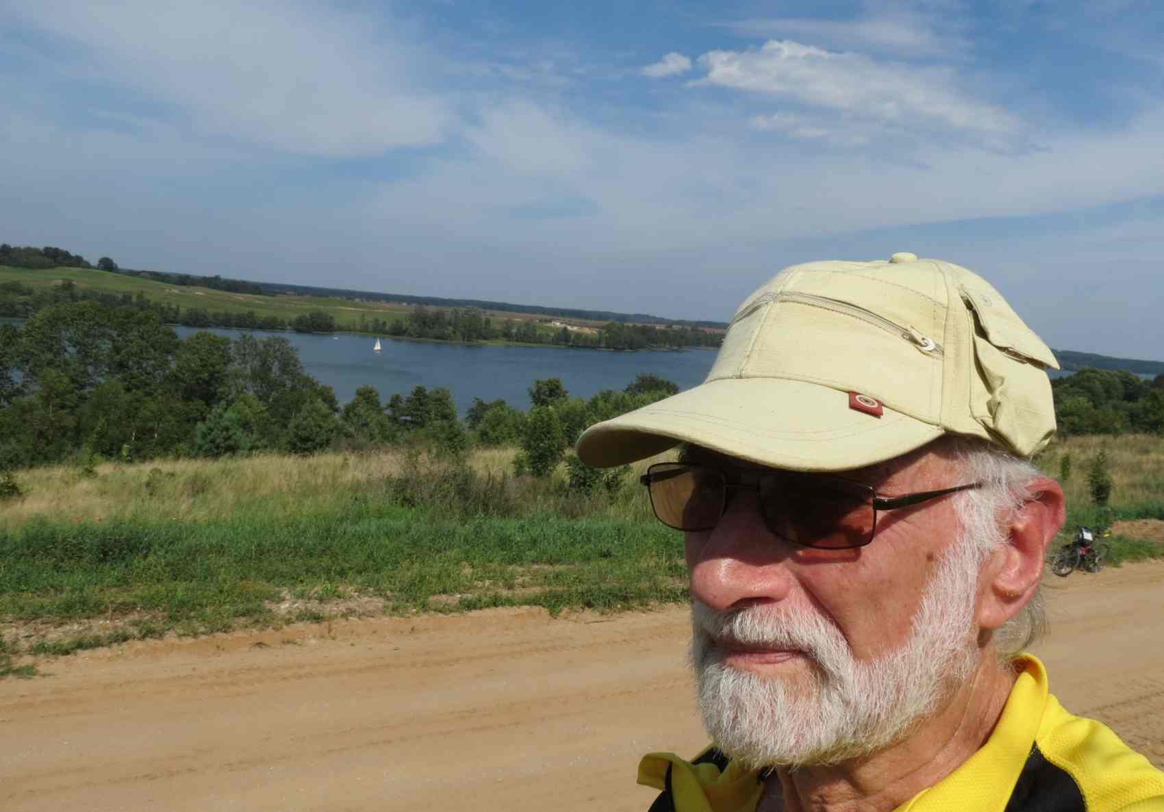 Jestem nad Jeziorem Wulpińskim ( w tle)Woj. Warmińsko-Mazurskie, gdzie przyjechałem rowerem z Olsztyna (widać go po prawej stronie)