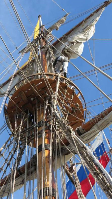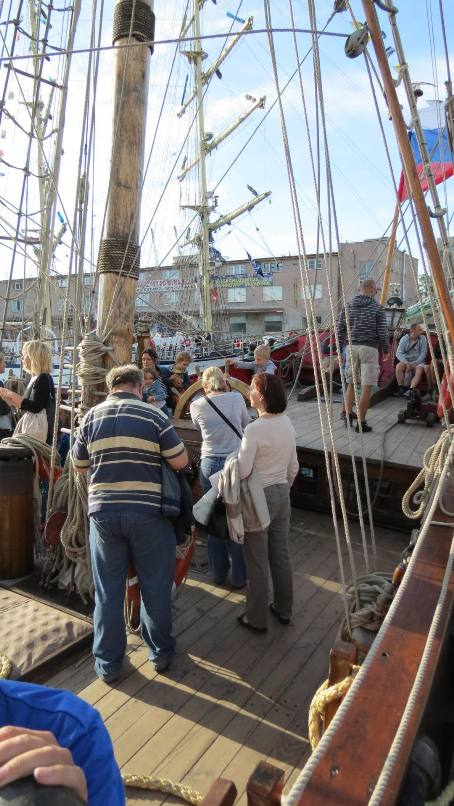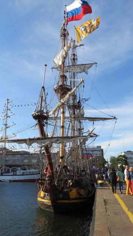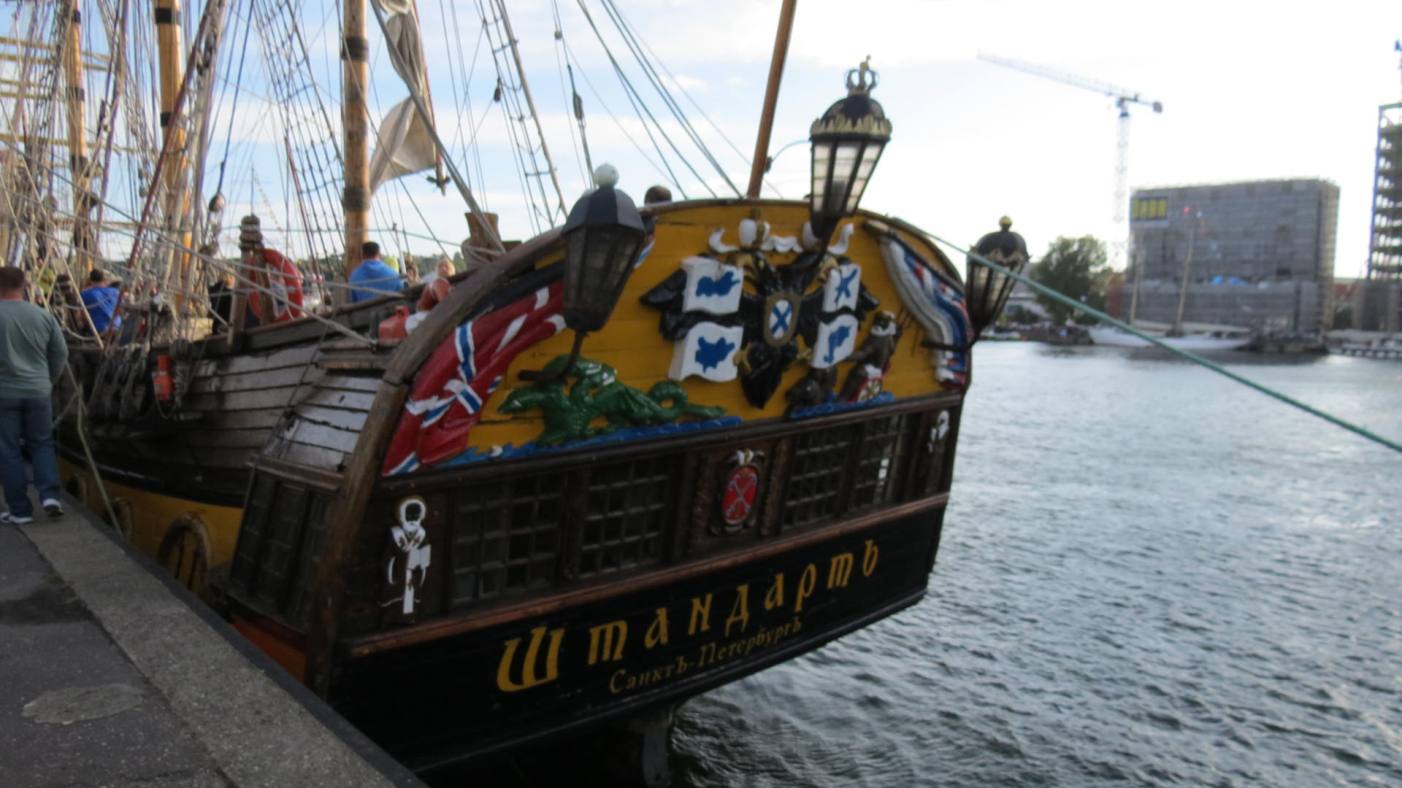 (cytat z Wikipedii): "Sztandart (ros. ????????, trans. ang. Shtandart, MMSI 273452840) - replika fregaty z 1703 r. - okrętu flagowego rosyjskiej floty zaprojektowanego przez cara Piotra Wielkiegoi zbudowanego przy jego udziale. Inicjatorem odbudowy żaglowca i jednocześnie jego pierwszym kapitanem jest rosyjski historyk Vladimir Martus. Dzięki pomocy historyka Victora Krajnyukowa udało się zebrać podstawowe informacje na temat konstrukcji i budowy fregaty. Pomimo posiadania jedynie XVIII-wiecznej ryciny ukazującej Sztandart podczas bitwy, zdecydowano się na budowę repliki. Prace rozpoczęto 4 listopada 1994 r. Do budowy użyto tych samych materiałów i wykorzystano takie same techniki jak w przypadku pierwowzoru. Gwoździe (8 tys. sztuk) i okucia zostały ręcznie wyprodukowane, natomiast drzewa (250 szt.) zostały ręcznie ścięte na terenie parków w pobliżu Sankt Petersburga. Do budowy żaglowca użyto kilka rodzajów drewna w zależności od przeznaczenia: